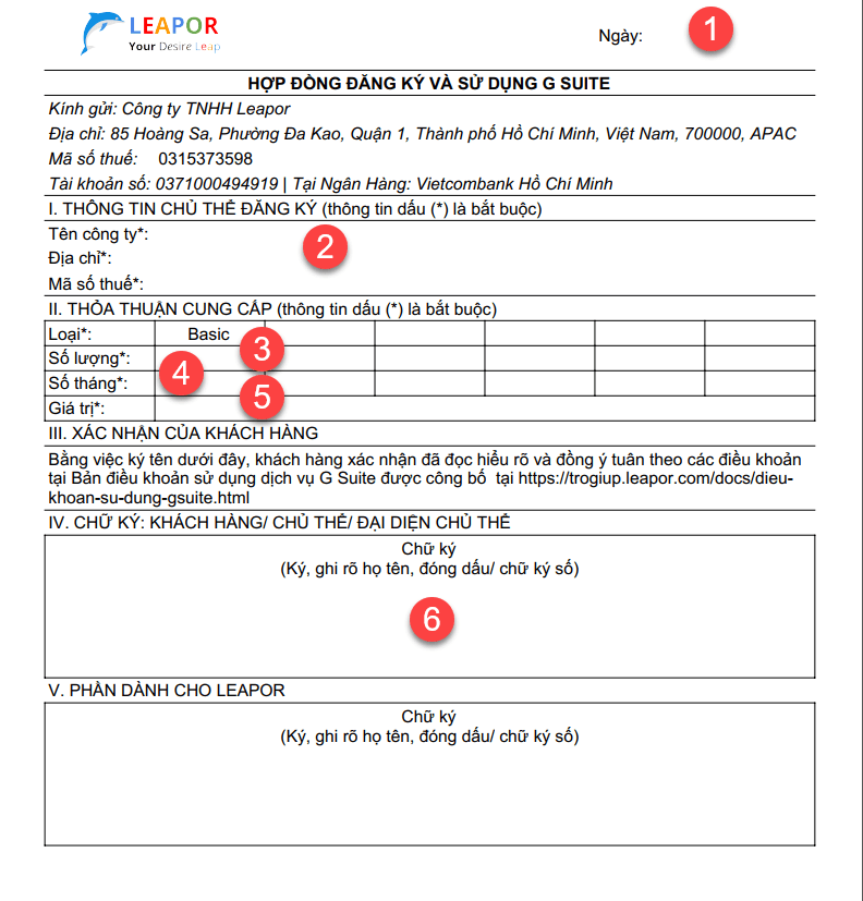Sau khi tham khảo Điều khoản dịch vụ G Suite quý khách có thể tiến hành ký kết hợp đồng theo hướng dưới đây.