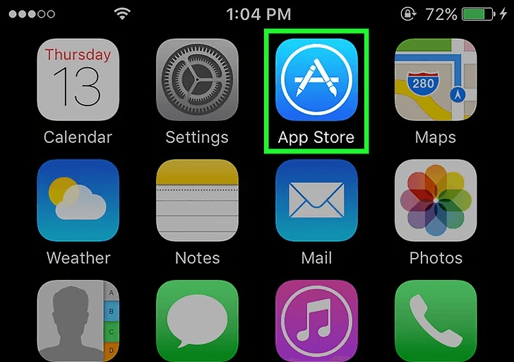 Mở App Store. Đó là ứng dụng màu xanh có chứ chữ “A” trắng nằm giữa vòng tròn.