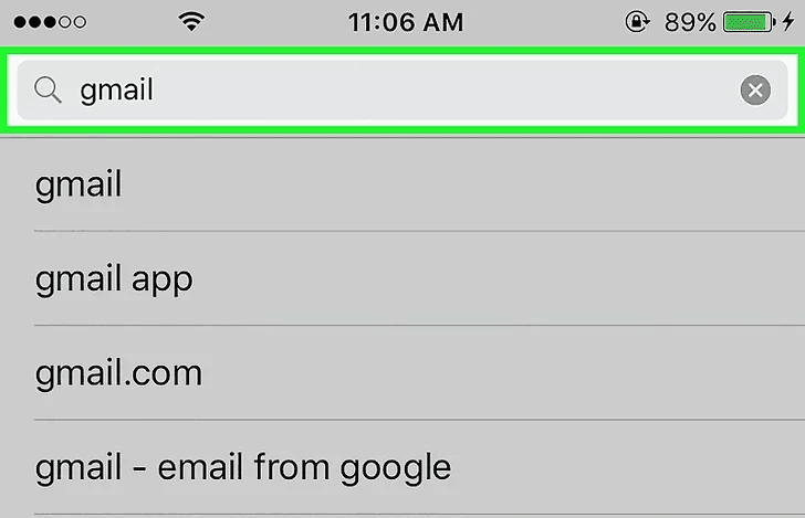 Chọn tìm kiếm có hình kính lúp. Sau đó chọn “Search” ở trên cùng màn hình và gõ “Gmail”. Khi bạn gõ, các ứng dụng sẽ được gợi ý ở màn hình bên dưới ô “Search”.