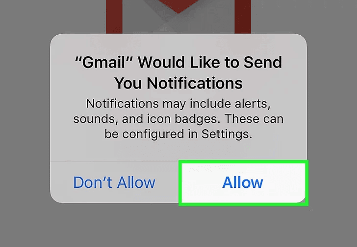Chọn Allow. Để chấp nhận ứng dụng gửi thông báo đến bạn khi bạn nhận thư mới.