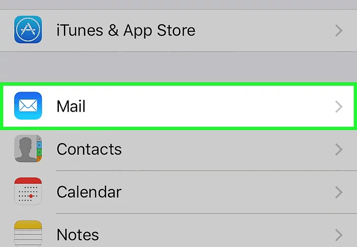 Kéo xuống và nhấn chọn Mail. Nó nằm ở khu vực cùng các ứng dụng khác, như Calendar và Notes.