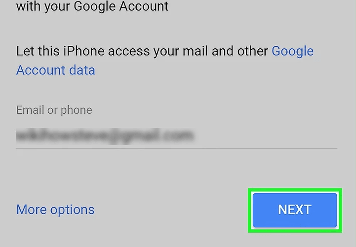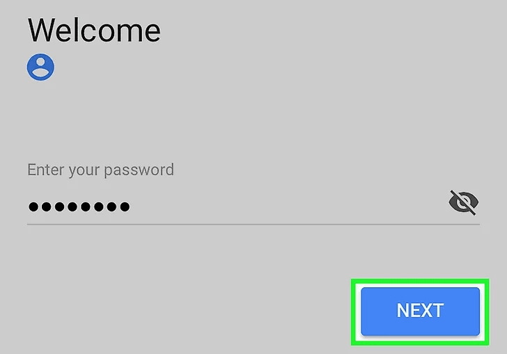 Chọn NEXT. Nó là nút màu xanh trên màn hình. Nếu bạn cài đặt xác thực hai bước cho email của bạn, bạn có thể cần nhập mã xác thực để tiếp tục.